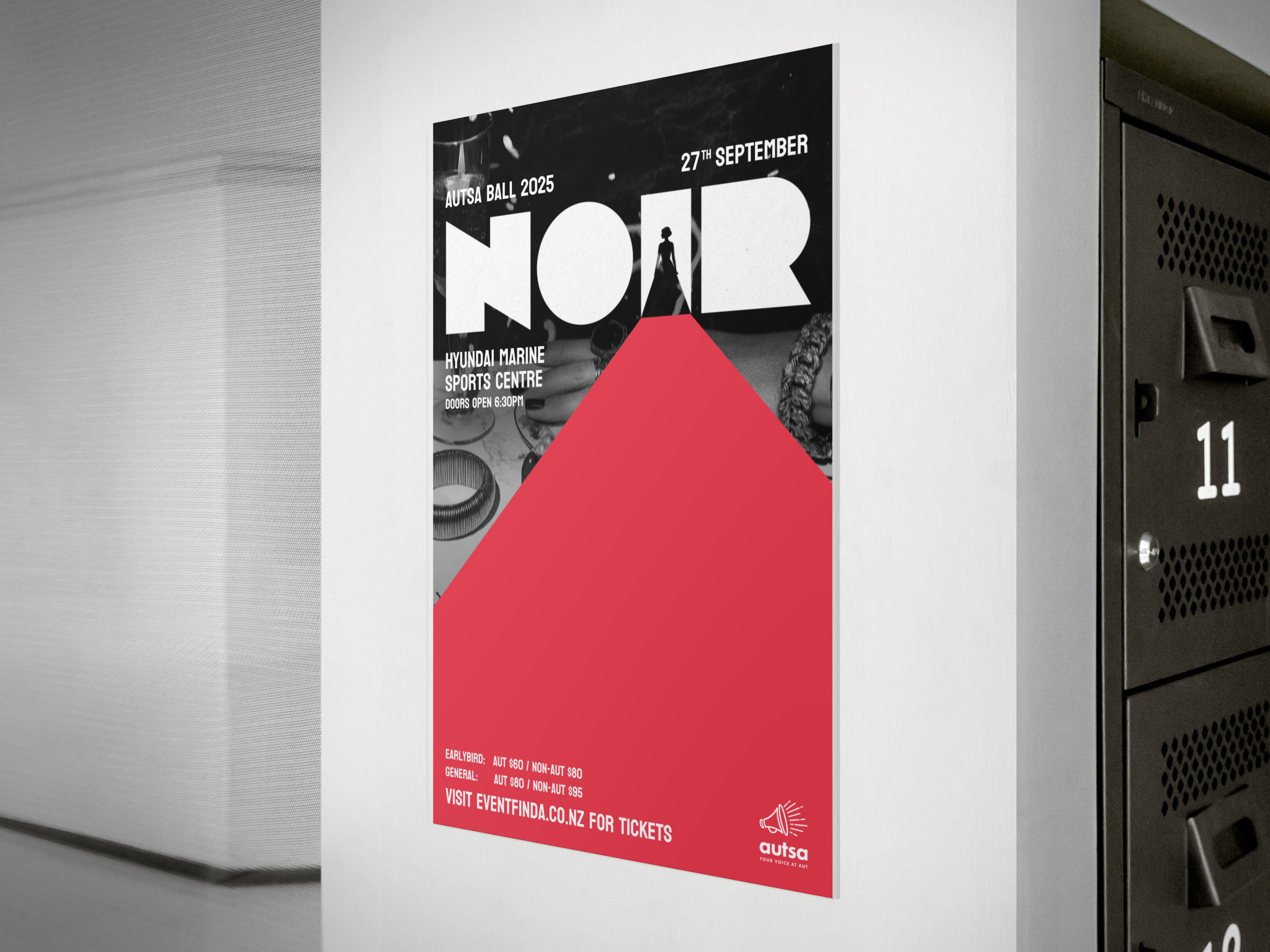 An event identity for AUTSA’s annual ball, leaning into a darker, editorial tone across posters, digital assets, and on-site collateral.